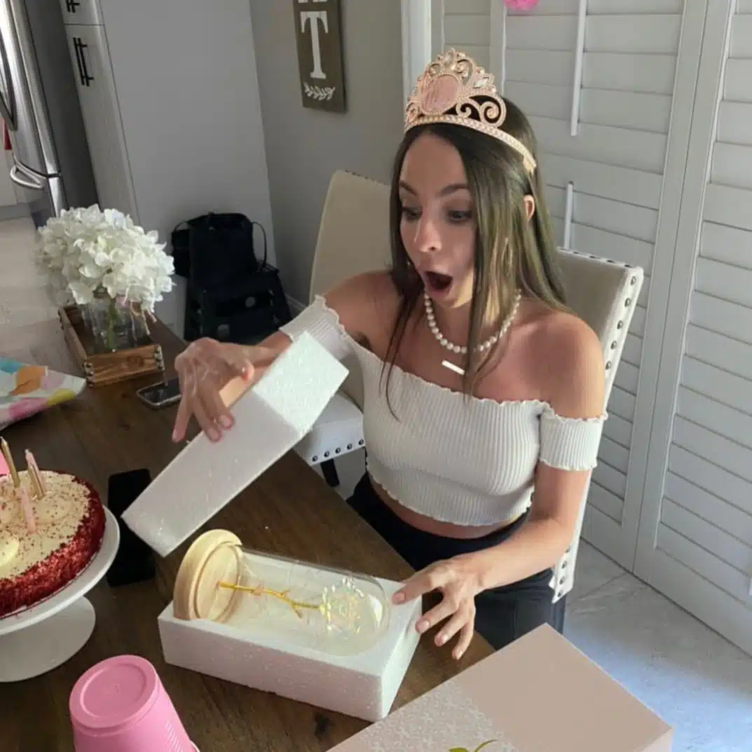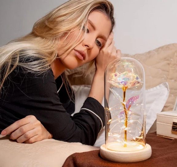 وردة الكريستال المضيئة داخل القبة الزجاجية ماشي غير ديكور، ولكن رسالة حب راقية كتقول “أنتِ غالية عليّ” بلا ما تهضر.